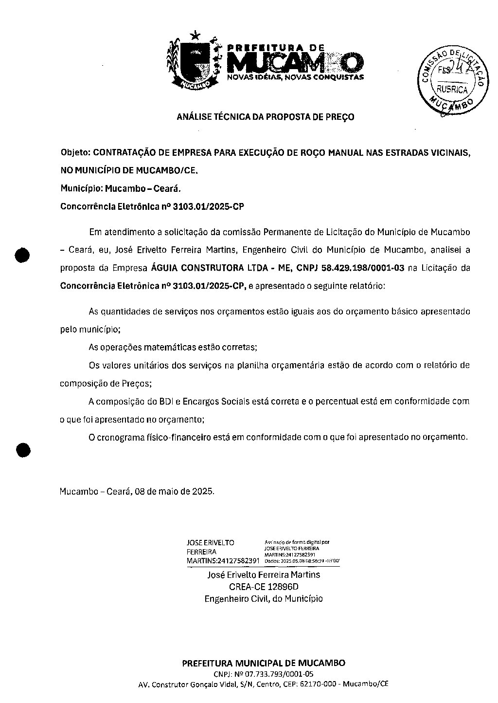 ANÁLISE TÉCNICA DA PROPOSTA DE PREÇO