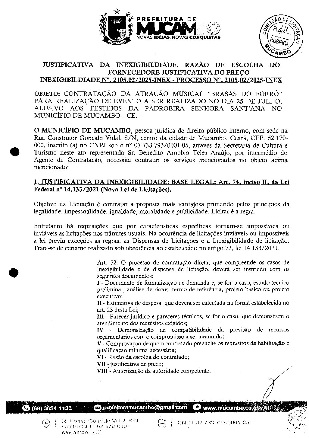 JUSTIFICATIVA DA INEXIGIBILIDADE
