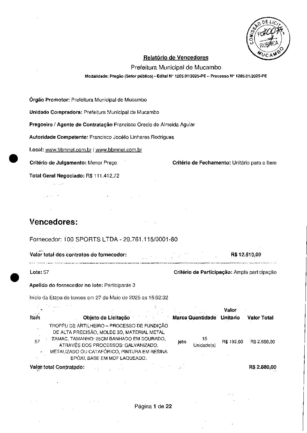 RELATÓRIO DE VENCEDORES