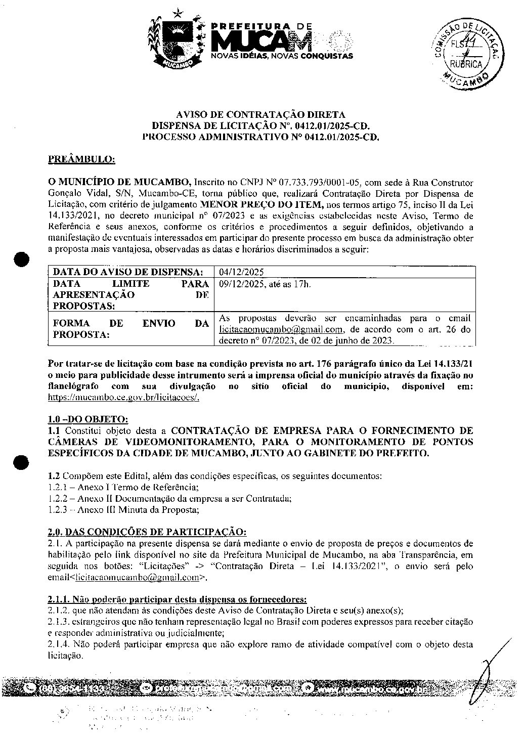 AVISO DE COTRATAÇÃO DIRETA