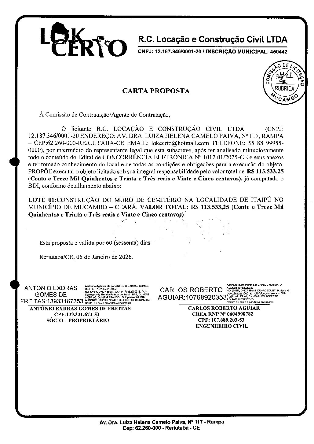 PROPOSTA DE PREÇO – PARTE 01