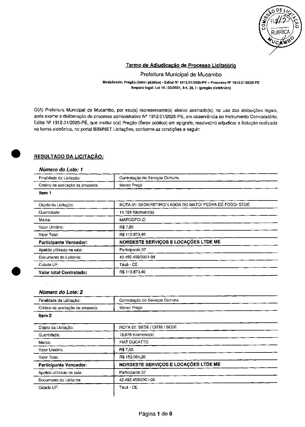 TERMO DE ADJUDICAÇÃO