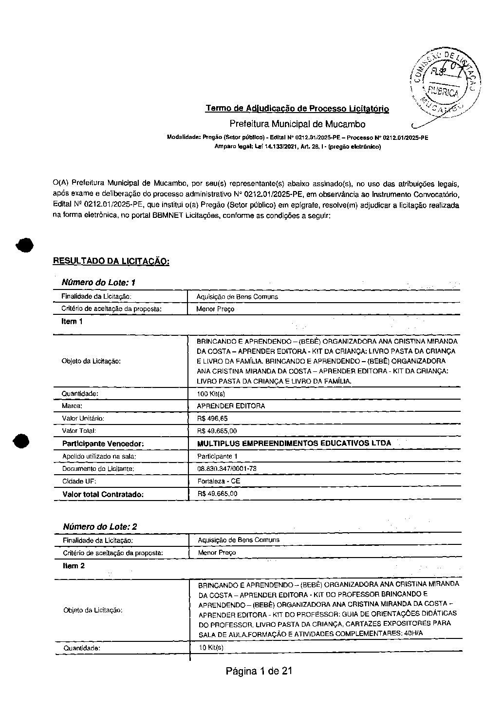 TERMO DE ADJUDICAÇÃO