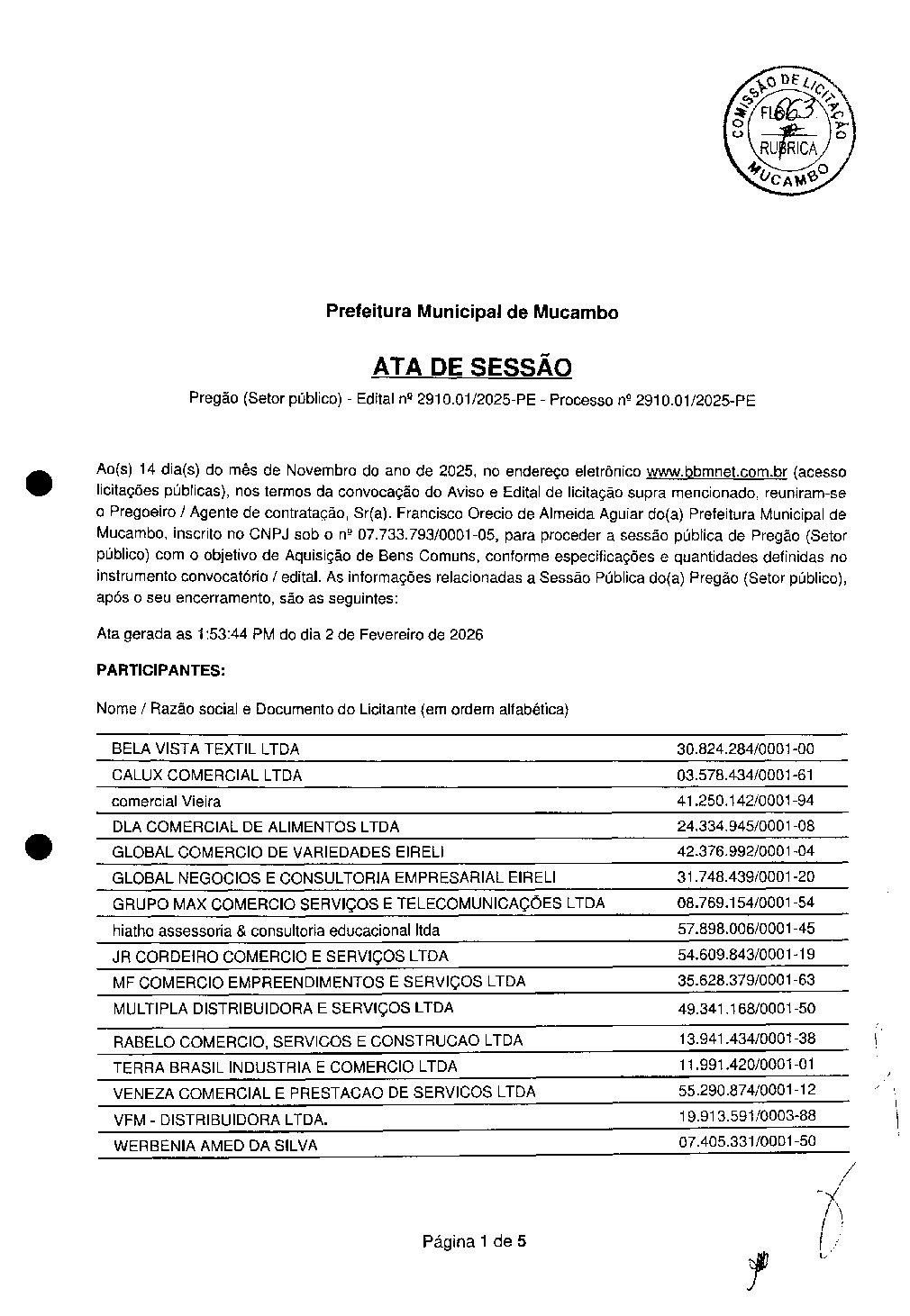- Data: 3 de fevereiro de 2026