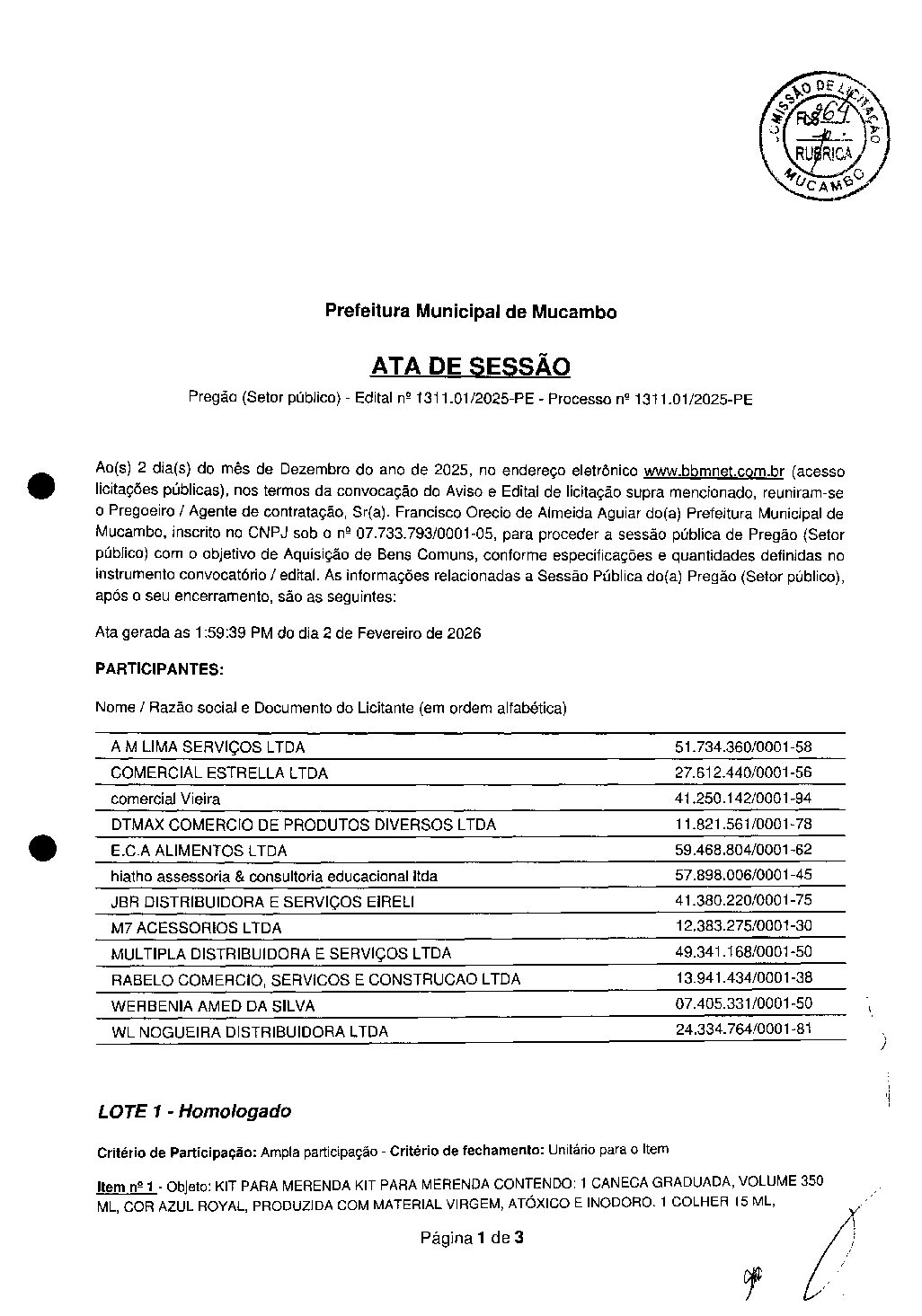 - Data: 3 de fevereiro de 2026