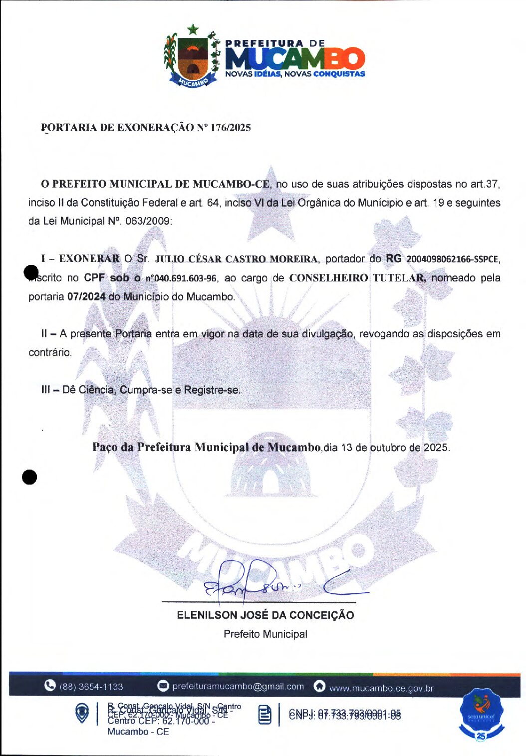 EXONERACAO N° 176-2025 (JULIO CESAR)