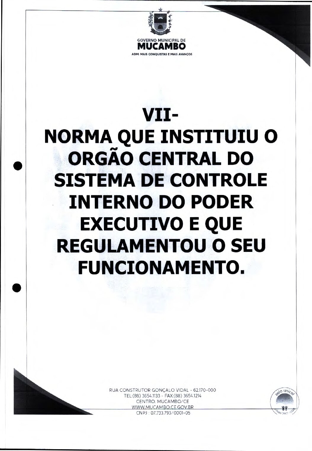 ITEM VII – NORMA QUE INSTITUI O ORGÃO CENTRAL DE CONTROLE INTERNO