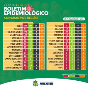 RELATÓRIO EPIDEMIOLÓGICO – COVID 19 – MUCAMBO – Atualizado em: Segunda-Feira, 29 De Novembro De 2021